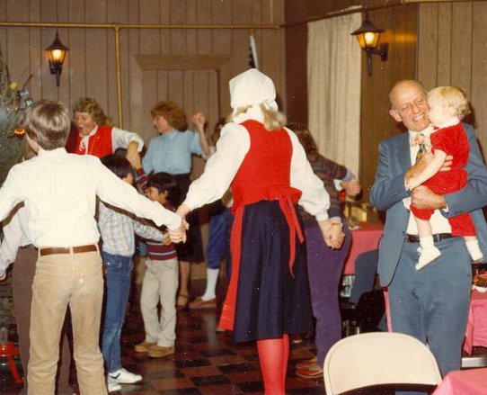 Here is a picture of me participating in the festival. I am not sure how old I was when I first started.  I remember going to the fest before I participated, though, so I might have been around six.  In this picture, I am wearing my very favorite outfit, one with special embroidered trim on it.  I remember waiting to be old enough to wear it, and then sad when I outgrew it.