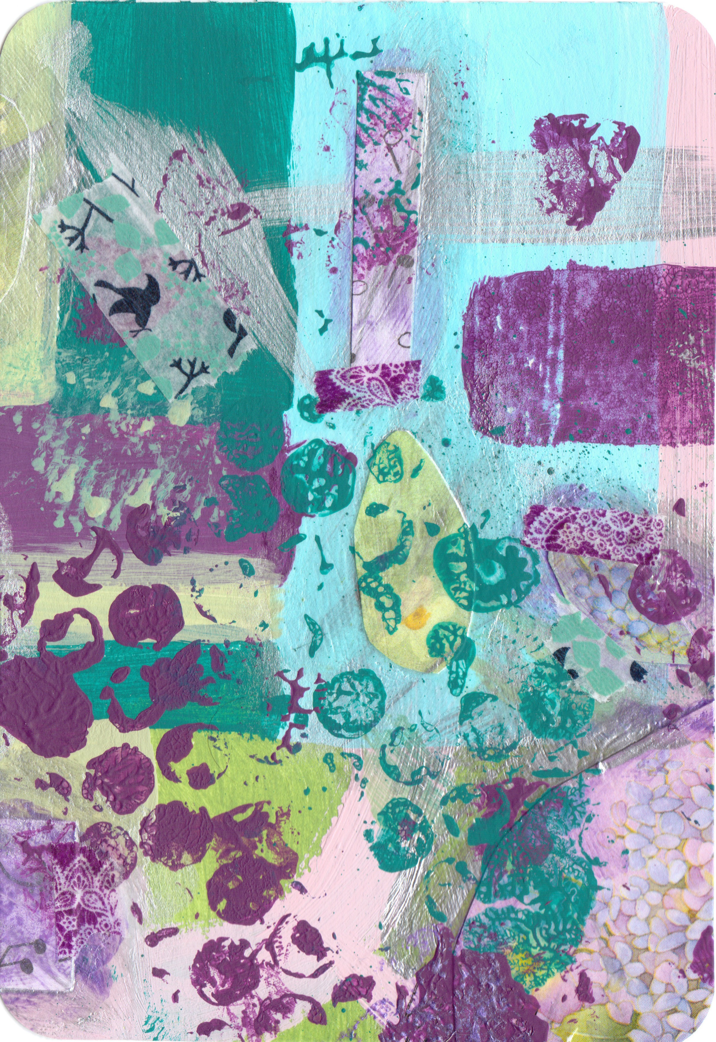 My favorite part is that Tricia writes that this is made from “Acrylic, Tape, Ink, Love.” The best art is heartfelt!